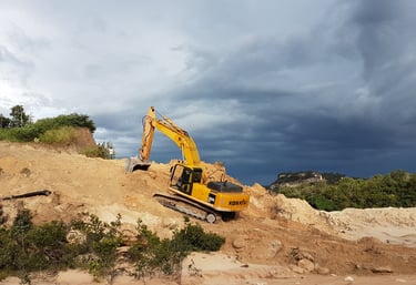 Extração e processamento de areia branca de alta pureza para diversas aplicações.